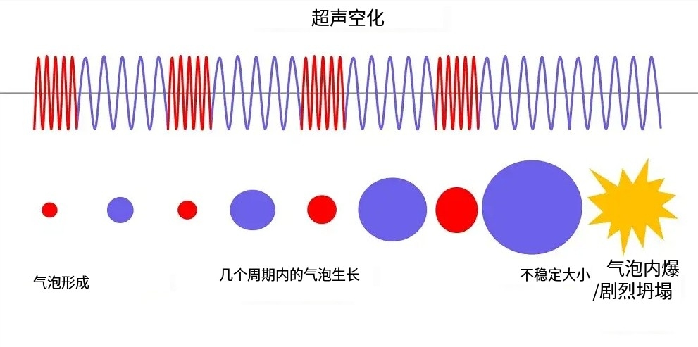 Его основной механизм соответствует ранее упомянутому «эффекту акустической кавитации», но цели применения другие: